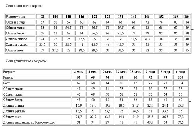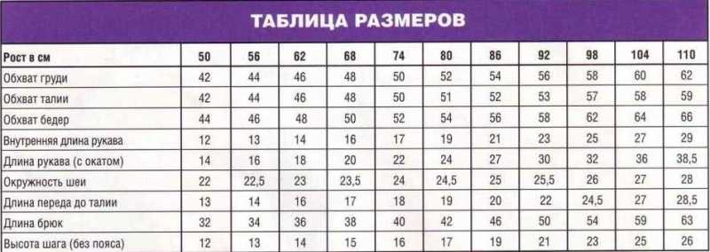 Таблица размеров детской одежды. Соответствие роста и веса ребёнка.