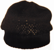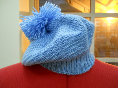 Шапка-берет связана из пряжи 32/2 в три сложения плюс в одно сложения для образования рисунка панчлейз (30% шерсти, 70% акрила).