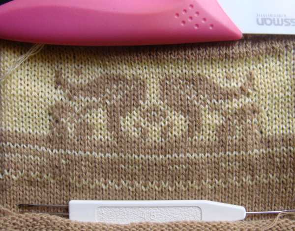 Наталья, правильно мыслите, рисунок, т.е черный цвет провязывала вручную. Затем выставила след.ряд по рис.иглы в ПНП, провязала основн.цветом, на иглы в пнп опять легли протяжки, их же провязала вручную, опять выставила иглы узора в пнп, провязала ряд основн.цветом и т.д. , не запутались?