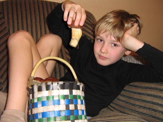 В этом году один раз съездили за грибами, мама у меня большая любительница. Были только белые, других не было вообще никаких. Сынишке самых красивых отобрали. Мы с мамой заблудились, пришлось папе звонить, чтоб он ногой по машине стучал, а мы на вой сигнализации выходили, эх и досталось нам с мамой потом от наших мужчин.