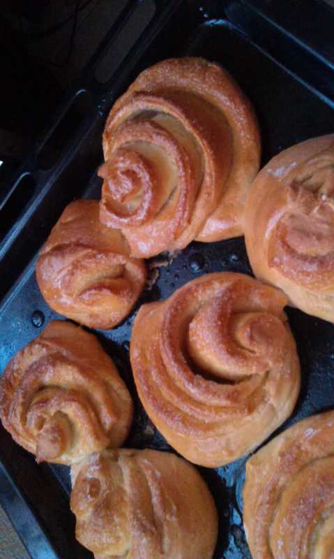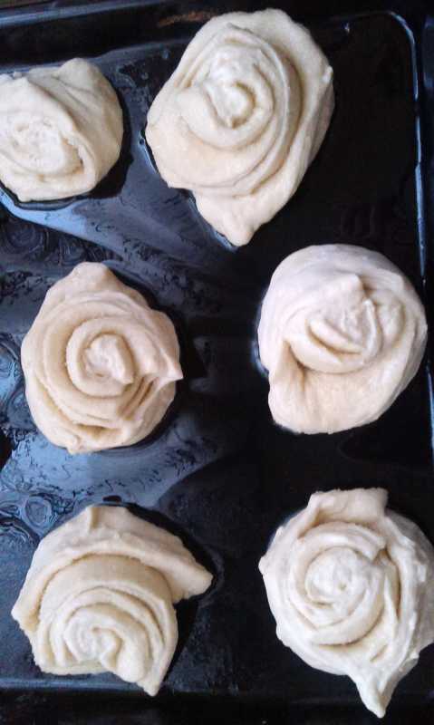 Эля, первая фотка где булочки еще не готовы так классно смотрятся, я когда глянула как будто на атласе (ткани)лежат розочки. А это противень с маслом))