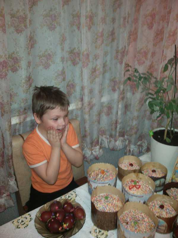 а я нынче куличи не делала , напекли ватрушек. И вышел у нас казус с ними. Яица покрасили, напекли ватрушек, разложили их ровненько и накрыли полотенцем. Поели, конечно, как без этого. Уже в первом часу ночи пошли спать, а перед этим Лариона домой пустили, это наш котяра. Накормили его, и вроде бы он даже заснул уже. Улеглись и мы, вдруг в ночи чавканье , да такое усердное, что меня аж любопытство разобрало. Думаю, что он там лопает, по столам никогда не лазил, а из жрачки у него только суп. Им чавкать он не может. Муж еще подначивает: "это он наши шаньги ест". Я встала пошла на кухню. Смотрю мой Ларион стоит на моих же шаньгах, правда накрытых полотенцем, и смачно так выедает картошку из шанги. Я, конечно, зыркнула- он осознал преступление. И представляете, он эту ватрушку всю слопал. Вот так- угощать в Пасху нужно всех членов семьи, даже самых мохнатых.