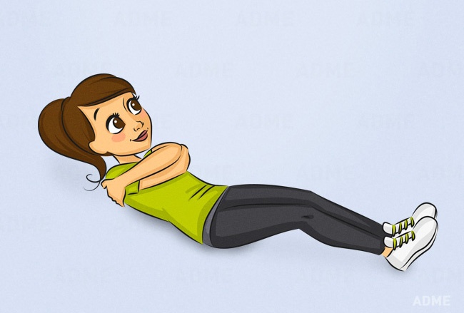 Как выполнять. Ложитесь на спину. Обхватываете себя за плечи руками крест-накрест. Максимально округляете спину. Приподнимаете верхнюю часть туловища и несильно начинаете «постукивать» спиной об пол.