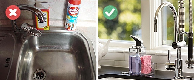 Ваша кухня могла бы быть кухней мечты, если бы не чистящие средства на самом видном месте — считают дизайнеры. Но что делать, ведь у каждой хозяйки на кухне должны быть под рукой гели и порошки. Выходом могут стать многоразовые дозаторы, подобранные по цвету и фактуре к интерьеру кухни. Купил, перелил, наслаждайся.