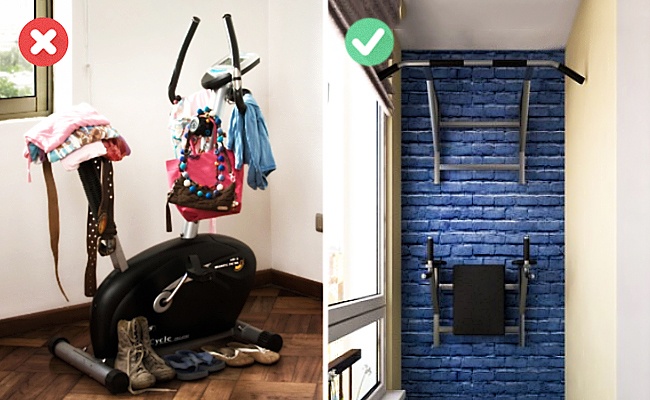 Если вы уже год не садились на велотренажер, то, возможно, он не так уж и нужен в квартире. Ну а если тренировки носят регулярный характер, то можно подумать об особом уголке для гантелей или устроить мини-спортзал на балконе.