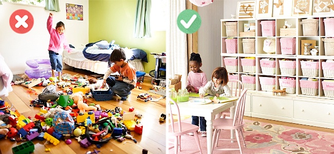 -Спору нет, тяжело поддерживать идеальный порядок, когда в доме дети. И все же дети могут стать фактором, не разрушающим единый ансамбль, а наоборот. Цветные контейнеры для хранения в детской, например, помогут с детства приучить к порядку .