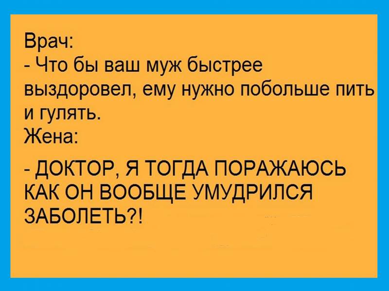 - Интересно получается, Боря: я тебя пригласила, чтобы ты выпил за мое здоровье, а ты хлещешь уже пятый стакан!..