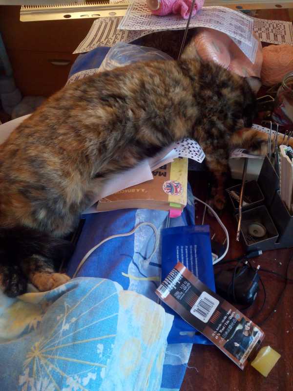 А я сегодня доделывала кофту внучки кошка ходила мявкала видать искала меня и в итоге вот те здрасьти