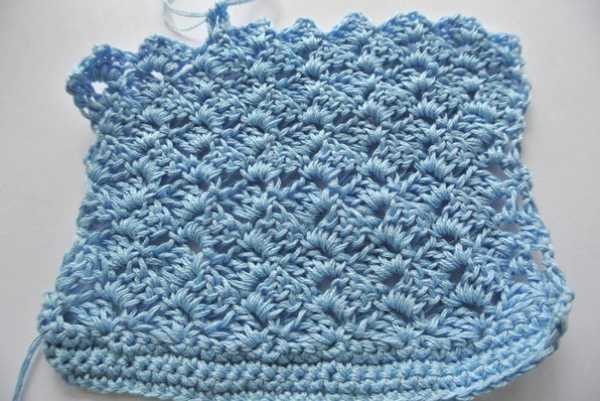 Образец из хлопка мерс Пехорка (голубой) связан в 4 нити, вязала не я, поэтому не знаю какое изделие планируется, но девочки написали что полотно пластичное, мягкое понравилось.