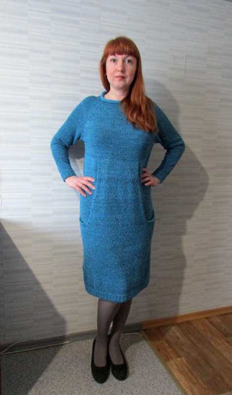 Ирина, моя новая вязалка- платье с карманами. Связала из Камушков Бирюза на черном+Фризе Бирюза.