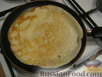 Разогреть сковороду, налить 1 ст. ложку растительного масла. Налить тесто тонким слоем , распределяя по всей сковороде. Жарить блинчики с двух сторон на среднем огне по 1,5-2 минуты, до золотистого цвета. Так жарить все блинчики, складывая их в стопочку и смазывая сливочным маслом.