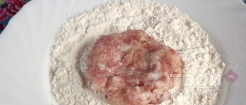 Хорошо защипываем края и панируем зразы в муке, формуя биточки. Тоже самое делаем со всем фаршем.