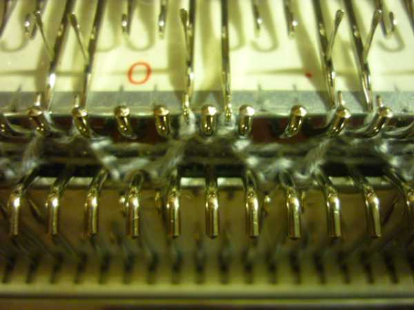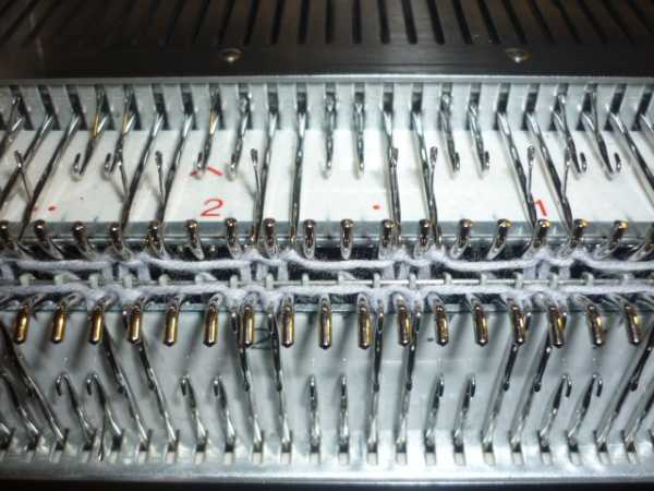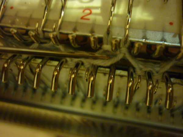 Заднюю каретку настраиваем на круговое вязание, плотность (смотри инструкцию)
