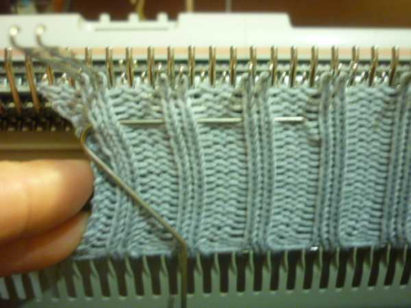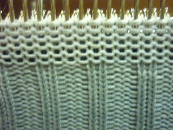 Теперь вешаем по двум сторонам -семёрочки. Они очень важны при вязании резинки, по краю резинки не будут петельки слетать, слоиться. Крайние петельки будут провязываться.