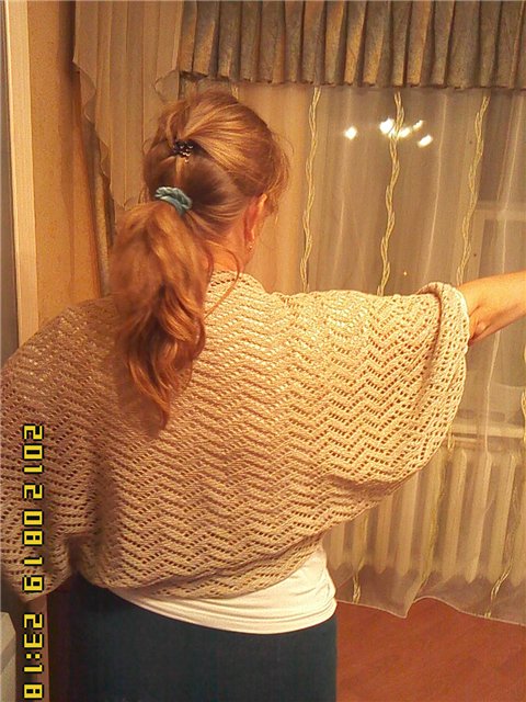 СПАСИБО большое всем за оценки. aqvamarina нитки хлопок60/лен40 500м/100гр."Крестьянка". Я из таких ниток связала юбку ажурную и к ней это болеро, фото юбки нет, заказчица не захотела себя показать, хотя юбка очень понравилась.