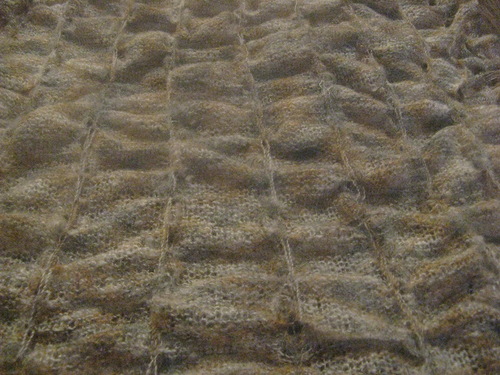 Для меня обработка горловины казалась недосягаемым мастерством,но глаза боятся,а руки делают.Горловину вяжу с закрытыми петлями,затем выполняю бейку:на расчётном кол-ве петель вяжу несколько рядов бросовой нитью,затем 4-5 рядов полоску для кеттлёвки основной,далее один ряд вспомогательной,один-кордовой и ещё один вспомогательной, потом опять4-5 рядов основной,перегнула полоску по этим разделительным рядам и навесила петли первого ряда,провязала соединительный ряд,а далее нужное кол-во рядов для резинки.Перебрала петельки резинки,закрыла,отплела бросовую нить ,с которой начинала вязать.Отпарила бейку ,выдернула кордовую,вложила горловину в кармашек и пришила кеттельным швом с обеих сторон.Может,есть какие ещё методики?С удовольствием буду учиться,если кто подскажет, как это можно сделать ещё