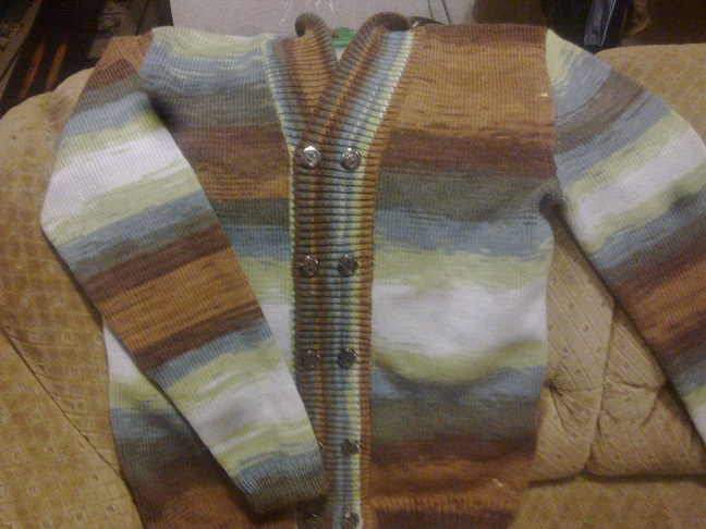 А тут хвастаться особо не чем, самый обычный повседневный свитерок, тот самый многострадальный, на который я узор спрашивала. Связала перед узором, не понравилось, распустила все нафиг и связала кулиркой, осень уже на пятки наступает, а ребенку погулять не в чем сходить. Сегодня обновили. Получился довольно прилично на вырост, надеюсь что хоть на год хватит.