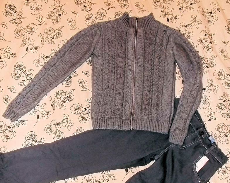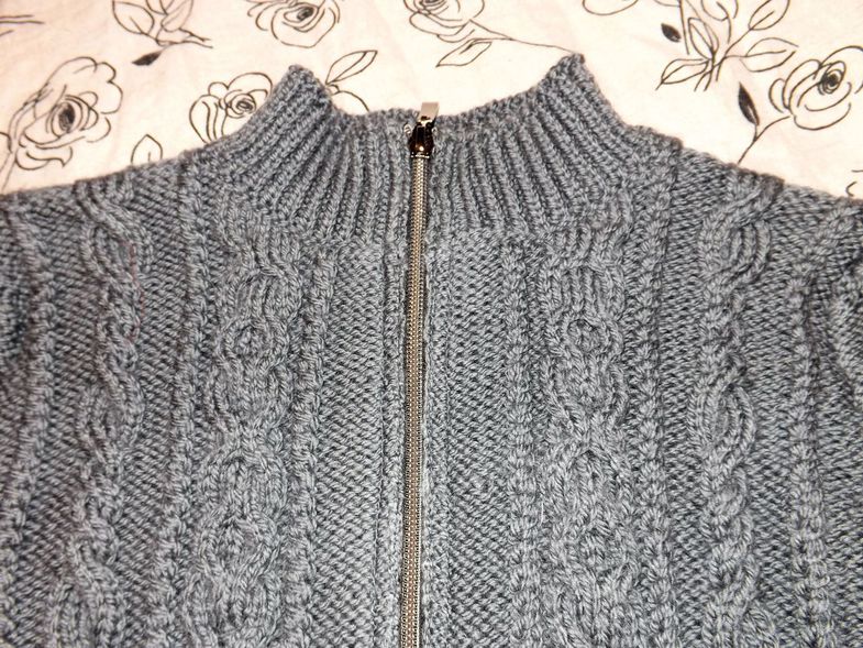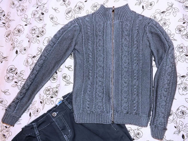 И опять кардиган тоже пасынку цвет "Моренго" (ушло 400 гр.) спицы 3,5, резинка 3.
