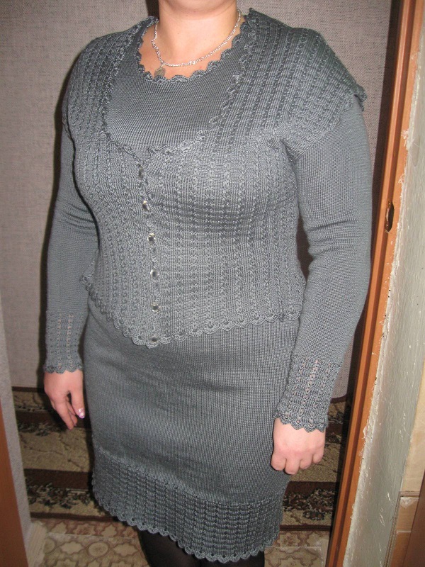 Девчонки, даже если надоело вам видеть, но все заказчицы прям без ума от этого узора( еще одну кофту точно такую же заказали!!), вот очередное платье с жилеткой: