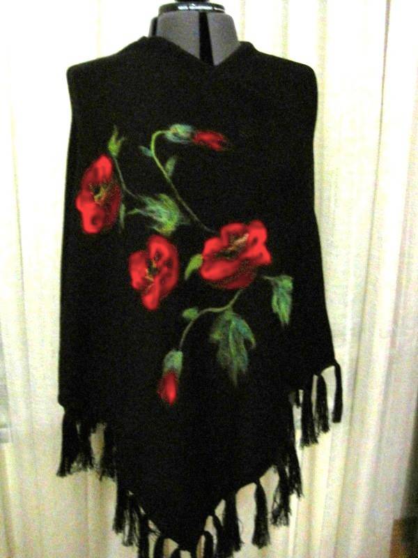 Марина, шикарное пончо с маками. Кто придумал, что это розы... сразу видно - это маки. Платье суперское. Я пока только облизываюсь и мечтаю о платье.