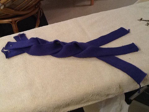 Девочки спасибо вам !!! А воротник и рукава вяжутся из трех полосок круговым вязанием на двух фонтурах по 15 петелек и приблизительно по 450 ряд.на рукава и 650 ряд на ворот. После ВТО дала сутки отлежаться и заплела косу расправляя полоски .Затем лишние я распустила..А после каждую полоску в круг петля в петлю зашила учитывая чтобы коса получилась как бы без швов и круговая.Полоски начинала и заканчивала вязать с бросовой нити. Может что-то не понятно я попытаюсь показать через фото.