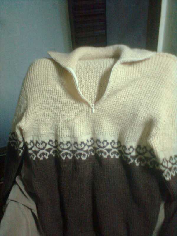 У меня проблема-муж не любит фотографироваться,а манекена нет. Пряжа -Вита Бриллиант
