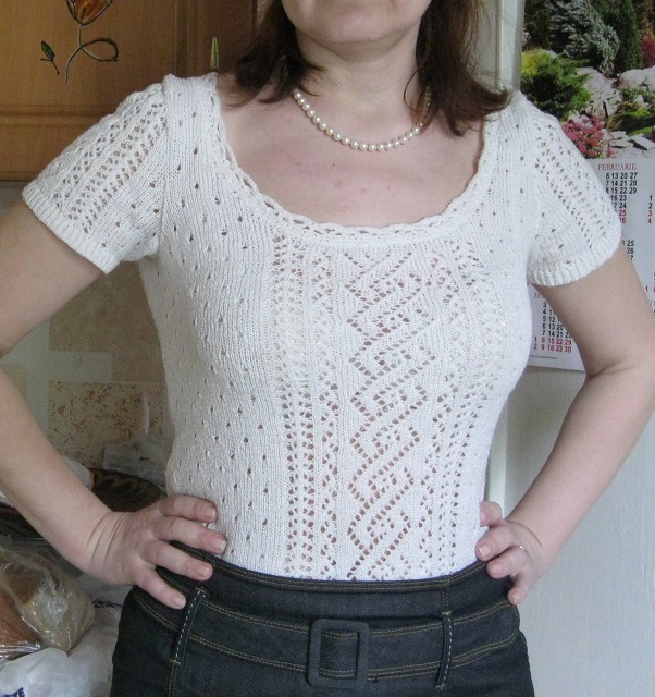 Мамзелька, кофточка красивая,и цвет и обработка и села по фигурке хорошо. ты тоже по Аниной выкройке делала?