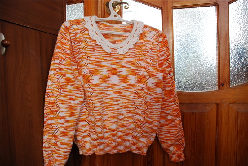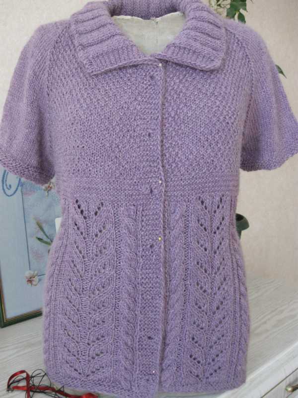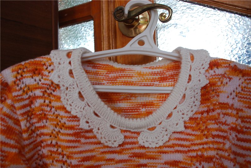 Решилась показать свои работы. Кофточка для приятельницы -она привезла 4 мотка акрила 280/100, и попросила связать ажурную На обработку горловины ниток не хватило, связала такой вот воротник, и что то меня смущает...