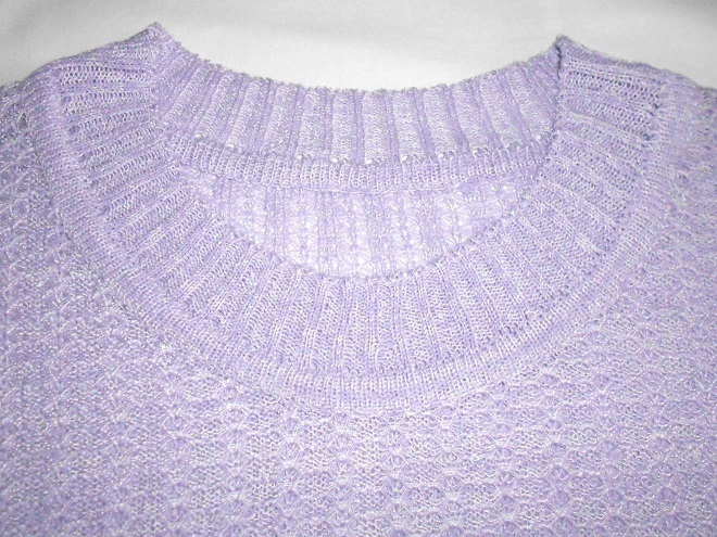 Сиреневая прессом в 2 нити - 1 нить белая фризе и 1 сиреневый хлопок пр.Испания. Отделка - бейки резинкой 2х2 с кеттлевкой в карман.