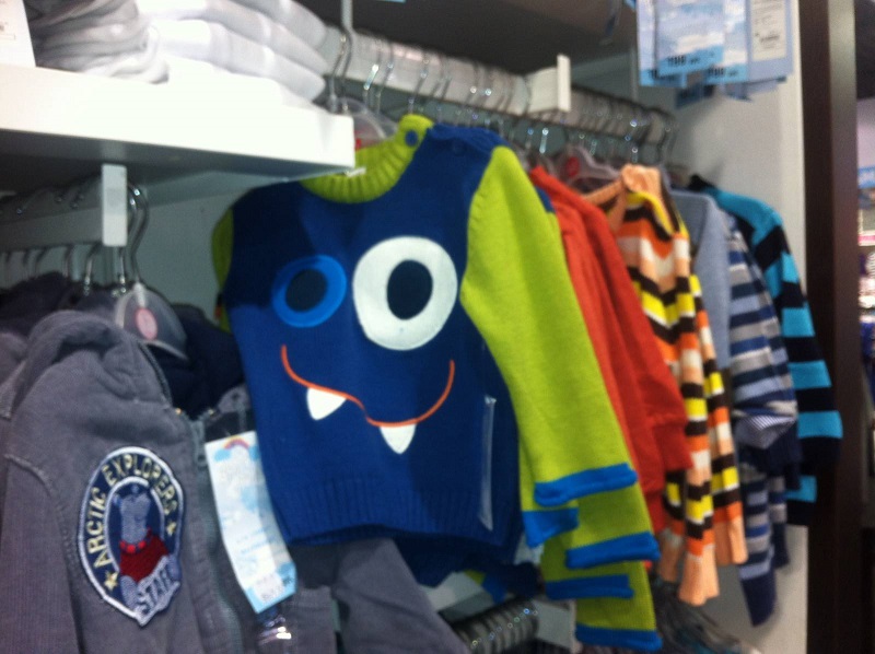 А на этом свитерочке еще были глаза и зубы нашиты из фетра, но сын почему-то все этого испугался, пришлось отпороть. Кофтейка конечно скучновата без нашивок, зато сын ее не боится