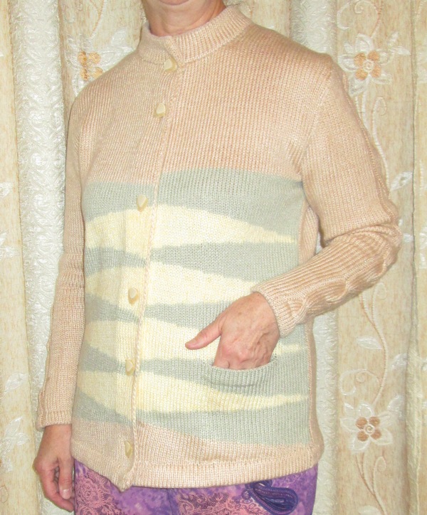 Жакет из кавказской толстой шерсти в пасмах на LK-150. Хорошо держит форму, скорее пиджак, чем мягкая кофта.