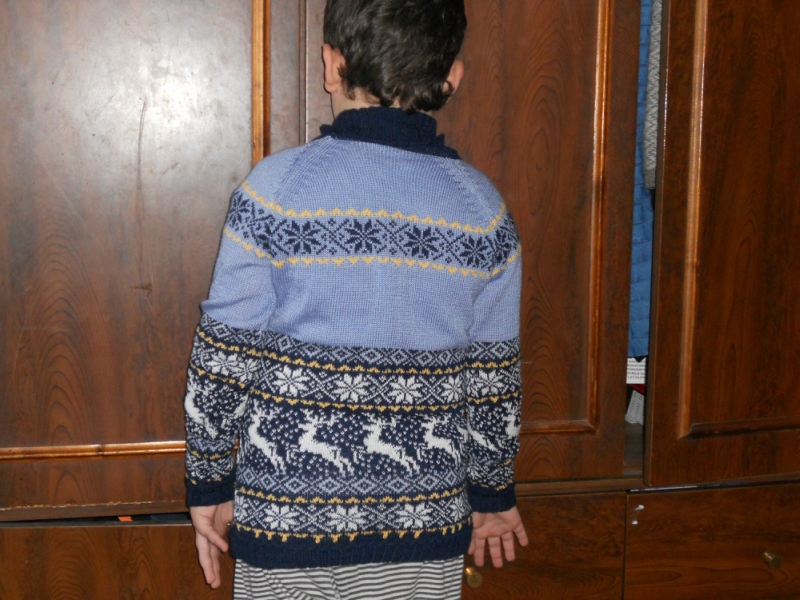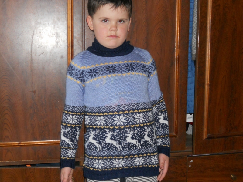 Шапочка для сына, двойная, теплая и мягонькая. Жаккард и фасон выбирал заказчик. Описание взяла у NK - ее шапочка "Лоси".