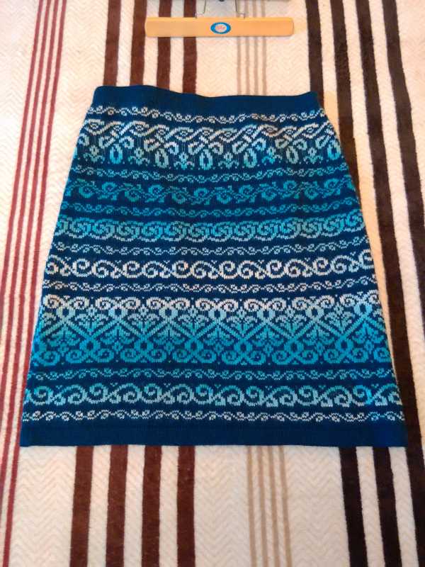 Я сегодня с юбочками.Очень их люблю.Тепленькие,нарядные.Вот и связались в подарок.Пряжа Ланоссо,жаккард Магик Византия(плотность 5)
