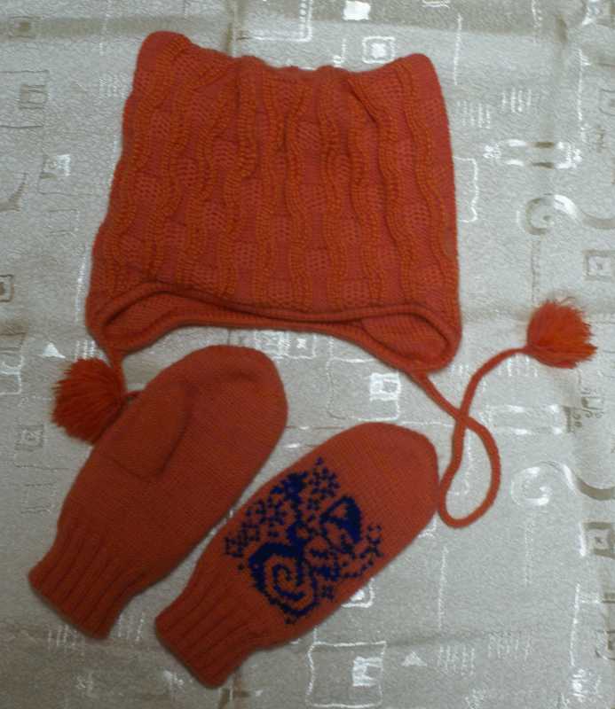 Шапка кошка с варежками в подарок.