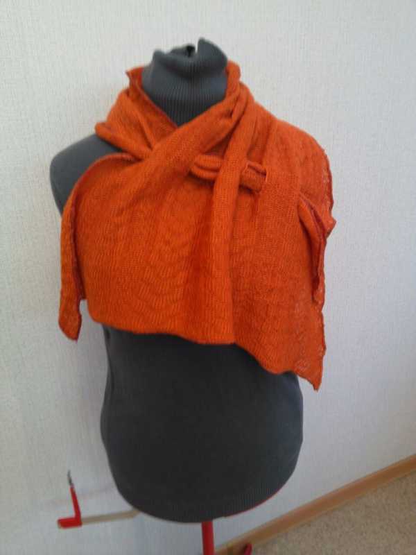 Ещё шарфы-косынки. ПШ в 2 нити, пресс на плотности 6. Отделка оверлоком.