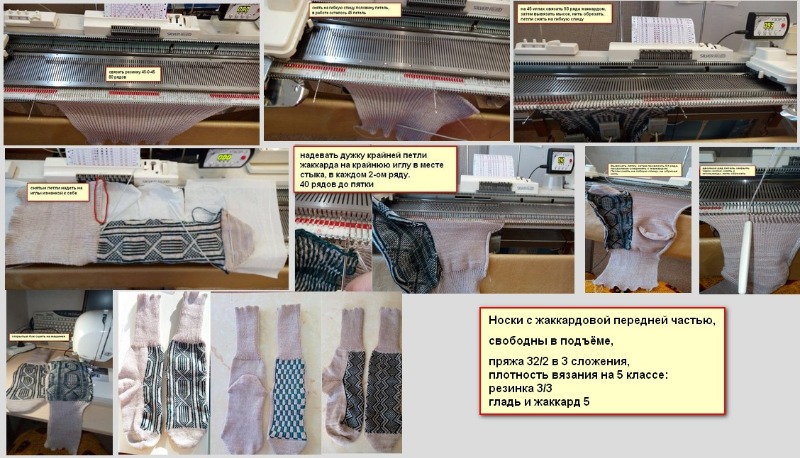 Не забываем про левый и правый носок (боковые петли от жаккарда одеваем для левого носка с одной стороны, для правого с другой).
