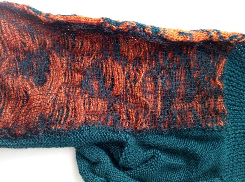ПШ в 3 нити, резинка 1х1, плотность по передней фонтуре 3, по задней 7, слип в одну сторону, 160 игл, 360 рядов