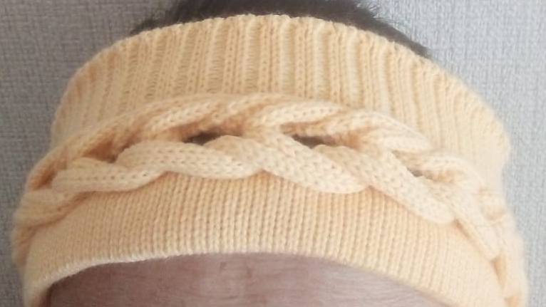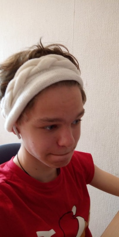 Повязка на голову. Внук в качестве модели. Оброс за время карантина, постричь бы надо.