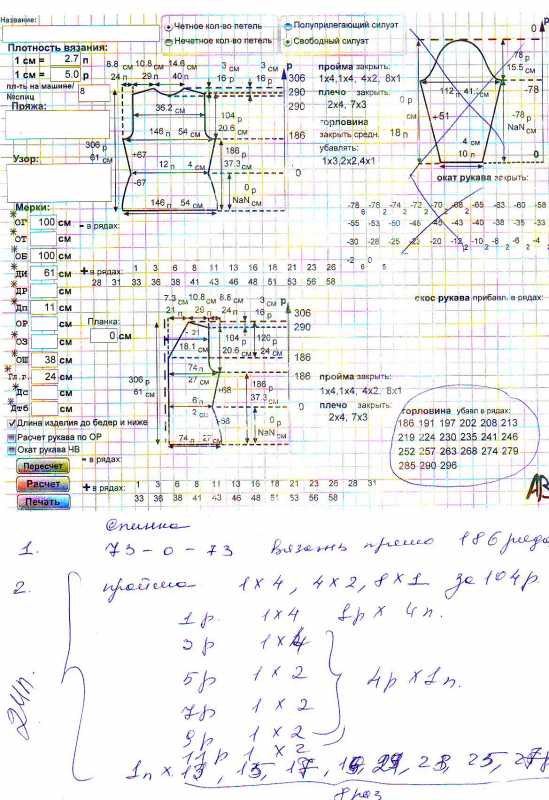 По поводу горловины спинки. в 254 ряду. Это опять же из-за ширины планки. Лучше планочку разумную учесть, а остальное на бумажке прибавить. Тогда расчет будет более правдоподобным.