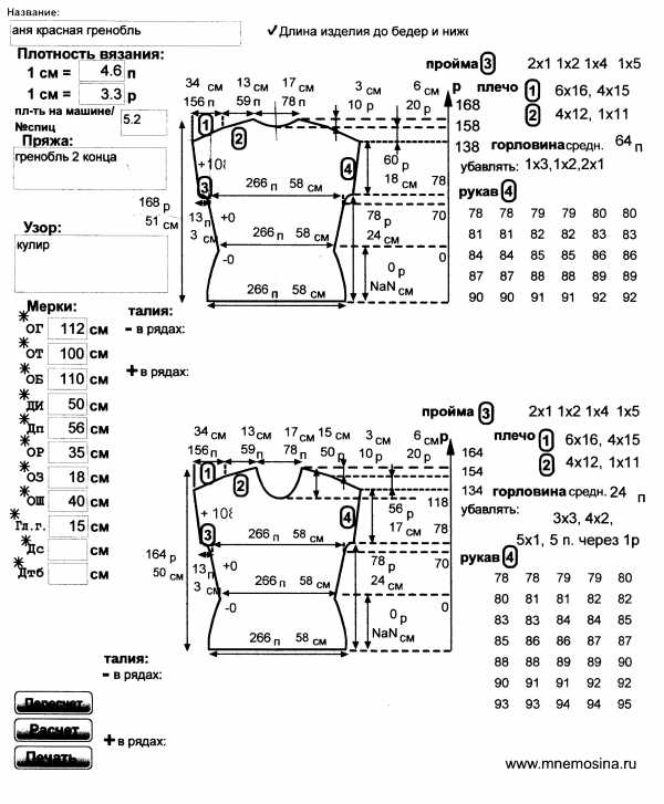 Вязать более рыхло (больше цифра плотности), толще нить или взять узор, который дает расширение полотна, например пресс. Но так плохо видно расчет, Неужели там больше 200 петель? Там ОГ 100, и разглядела цифры 122 петли по бедрам и 112 по линии груди? Так? Почему не хватает иголок? Или я не вижу расчет?