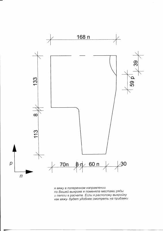 В этой выкройке предполагается короткий рукав + не поперечное вязание. Для поперечного вязания, конечно, удобнее перевернуть.