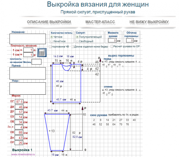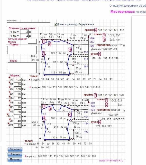 Я вязала по этой выкройке - все было нормально. Расчет покажите.