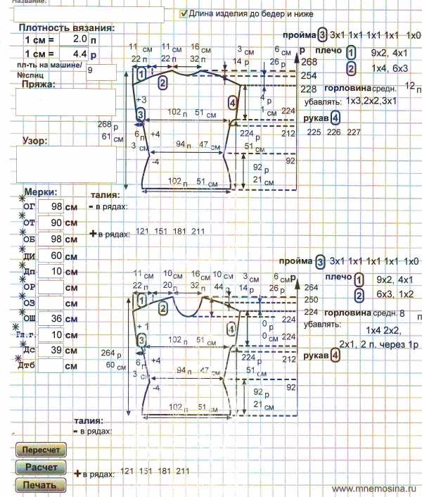Я знаю, что можно изменить цифры ;) , но не могу понять какие цифры надо изменить :cry: , чтоб горловина у шеи стала шире и по спинке глубже на 3 см для обвязки крючком. Надо поменять ширину горловины переда и спинки, длину плеча или что-то другое? :???