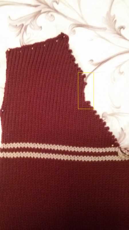 Жанулька, а почему у вас открытые петли по горловине остались? Если делать убавки, то их делают декером внутри полотна, на 3-4 петле от края, если вязать ЧВ, то тоже после сгляживающих рядов петли закрывают.
