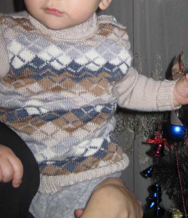 Видно у меня детки совсем не стандартные. Связала второй свитер. Рукав хотелось бы пошире. Вязала на рост 92. Обхват груди совпадает. А вот с обхватом руки все плохо. В таблице, которая в ссылке, ОР 17,5, а у нас 19. По выкройке вышло 21,6