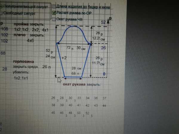 Чтобы рассчитать эту кофточку достаточно ввести мерку длины спины и мерку длины всего изделия, чтобы программа посчитала разницу в 5см сама. При этом галочку длина до бедер и ниже не ставить. Кофточка же выше бедер, так?