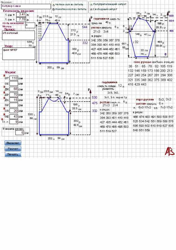 Здравствуйте. Хочу сыну связать джемпер,  вписала  мерки, но не могу найти как сделать расчет на машинное вязание. Помогите пожалуйста