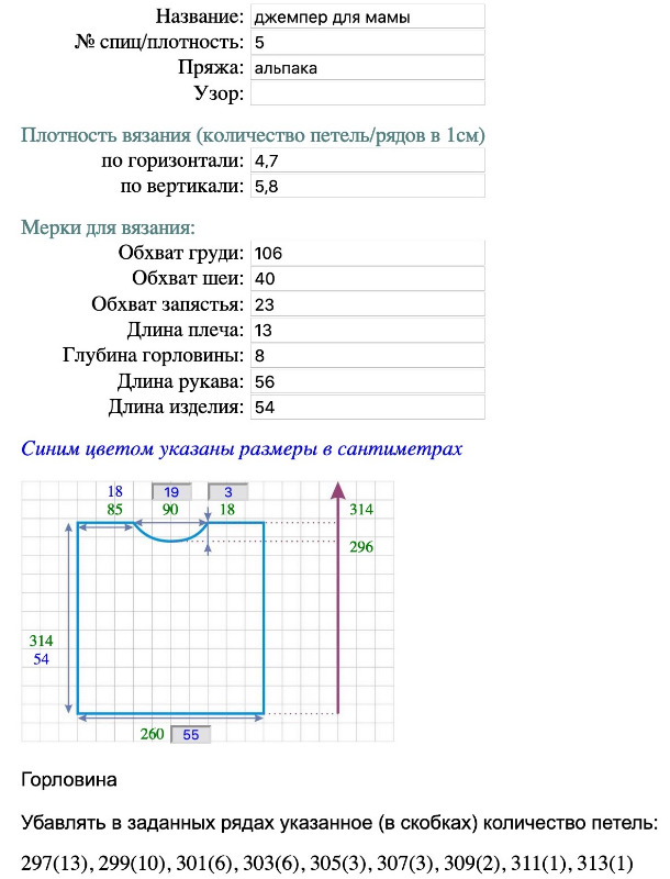 А мне по этой выкройке непонятно почему при количестве рядов на спинке 296 у переда рядов 319....