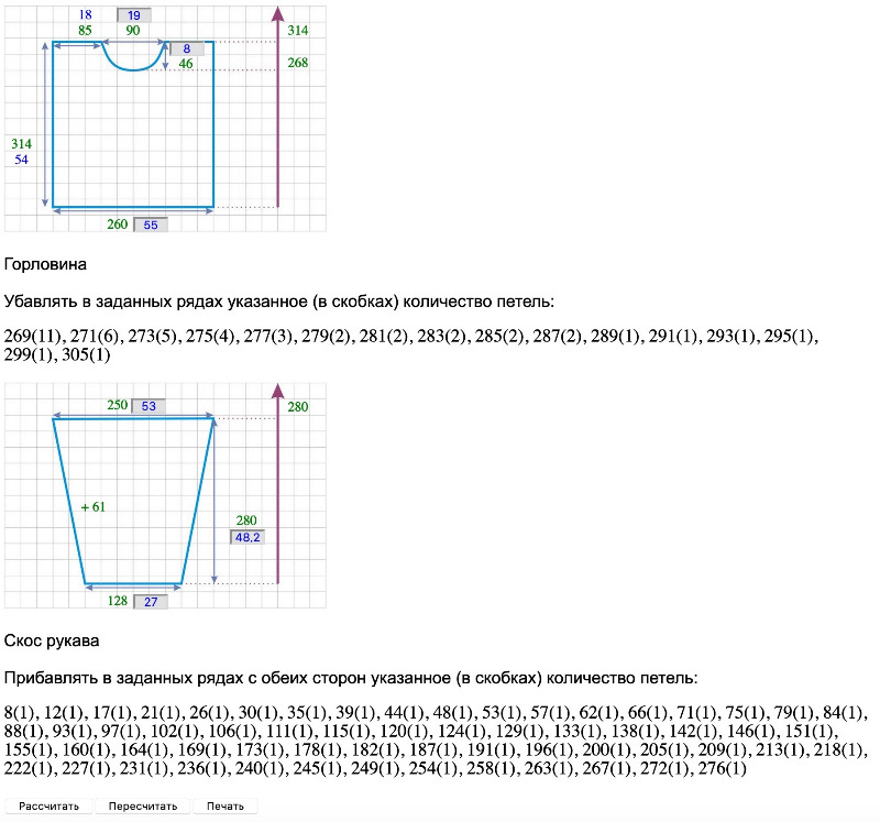 Женская выкройка вязания прямой силуэт, прямой рукав.