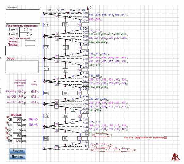 здравствуйте всем, я новичок. Сайтом пока пользоваться толком не умею, но пытаюсь разобраться. Подскажите пожалуйста, хочу связать юбку с 6-ю клиньями, вроде как разобралась , но не совсем. С правой стороны от выкройки указаны ряды убавления петель (цифры красные , зеленные, синие), а вот под ними черные цифры, на что они влияют? :???: